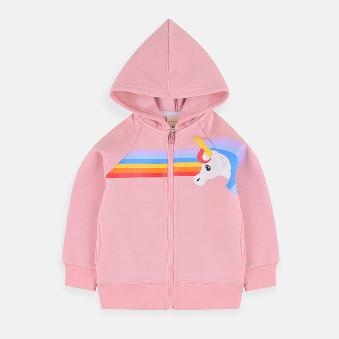Seema fayan Naseem B.X Rainbow Unicorn Print Pink Zipper Hoodie 3439