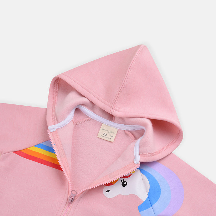 B.X Rainbow Unicorn Print Pink Zipper Hoodie 3439