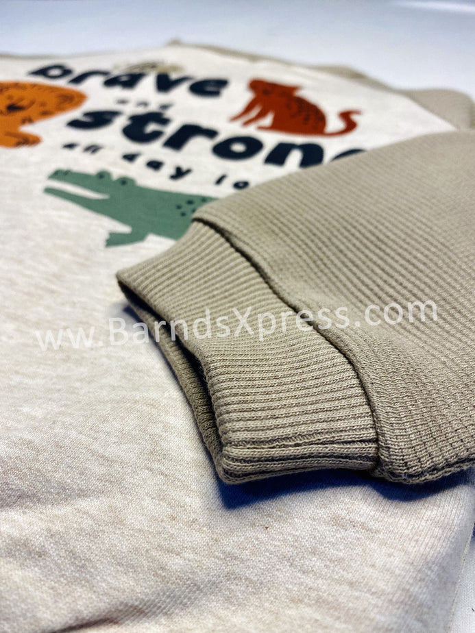 CA Brave & Strong Animals Raglan Sleeves Beige Sweatshirt 9774