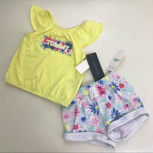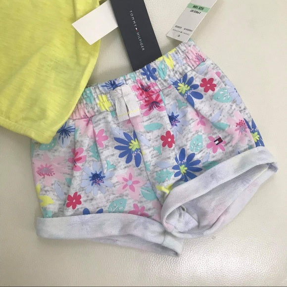 CNP Embossed Tommy Flower Yellow 2 Piece Shorts Set 10855