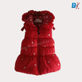 CS Heart Print Red Hooded Sleeveless Jacket 9835