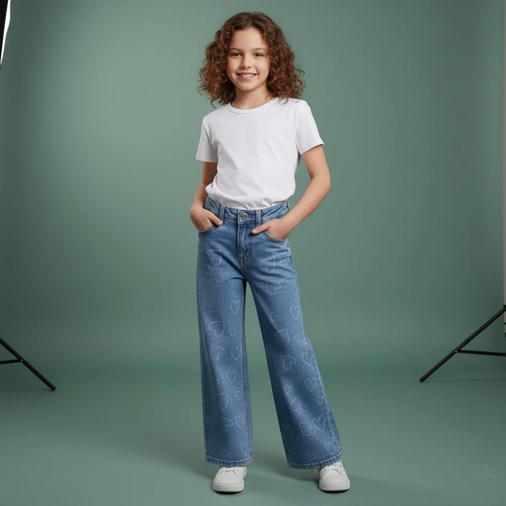 DP All Over Mini Hearts Style Wide Leg Mid Blue Denim 14970