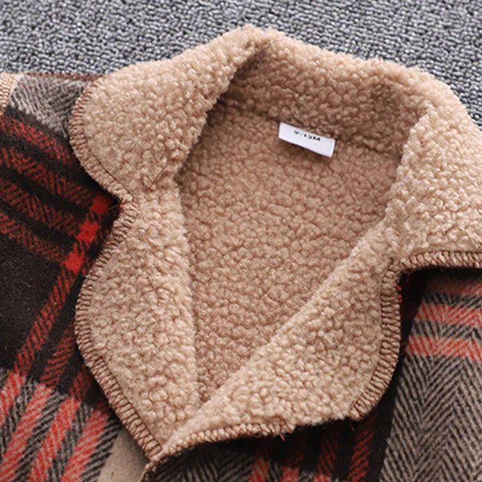 F.Happiness Square Pocket Red & Beige Warm Woolen Coat 10533