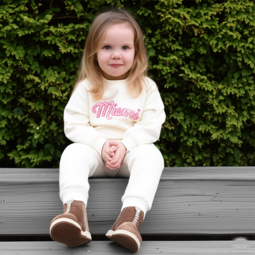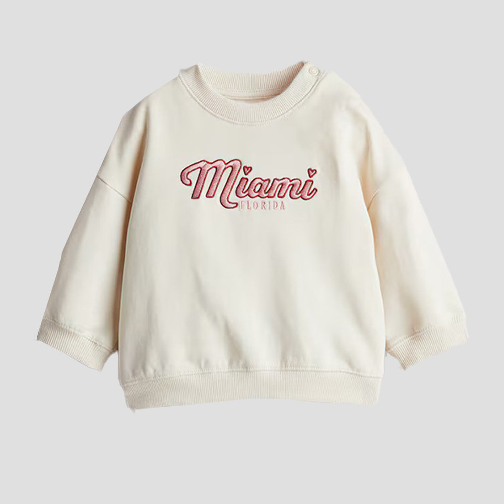 HM Miami Embroided Cream Light Fleece Sweatshirt 14244