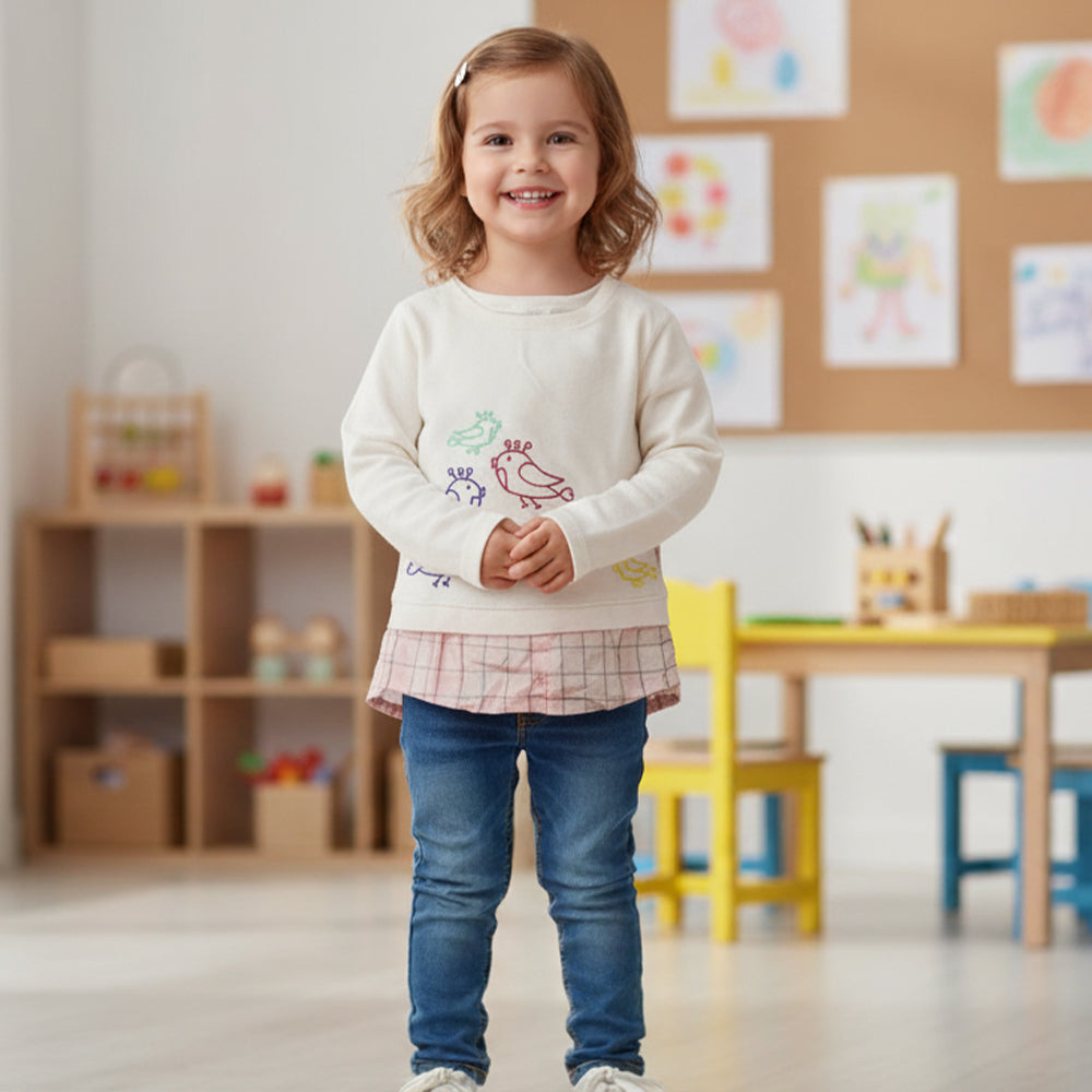 JS Multi Birds Embroided Bottom Baby Pink Sweatshirt 14439