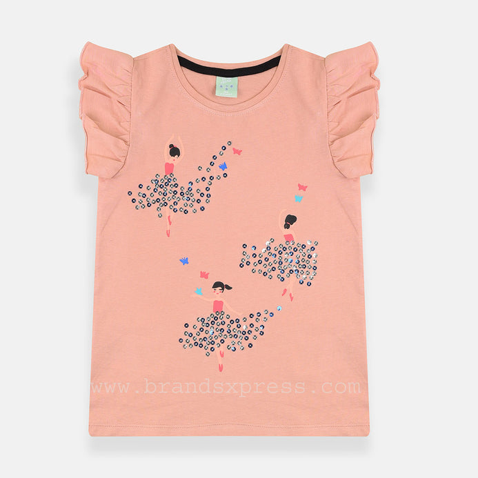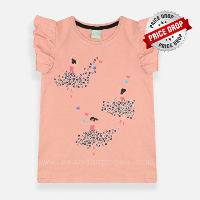K&K Dreaming Sequence Girls Printed Light Peach Top 4608