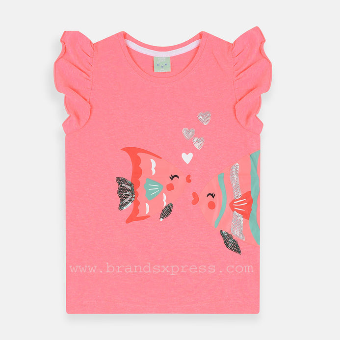 K&K Sequence Heart Fish Printed Shocking Pink Top 4610