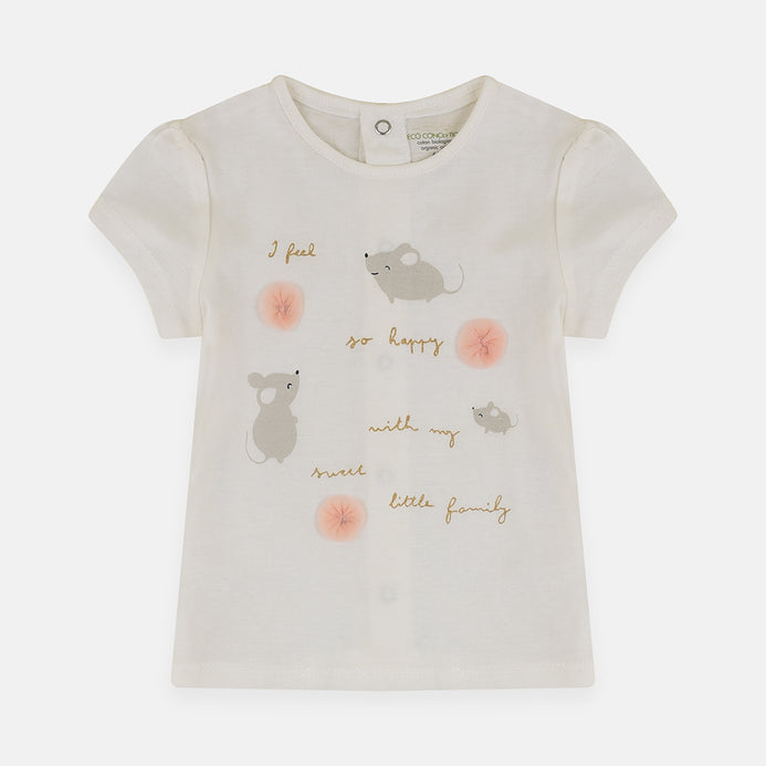KB Mice Family Applic Flower White Tshirt 4105