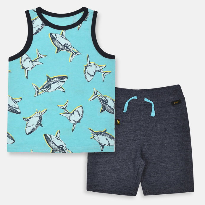 Lee Sharks Blue Tank Top with Dark Blue Shorts 2 Piece Set 13042