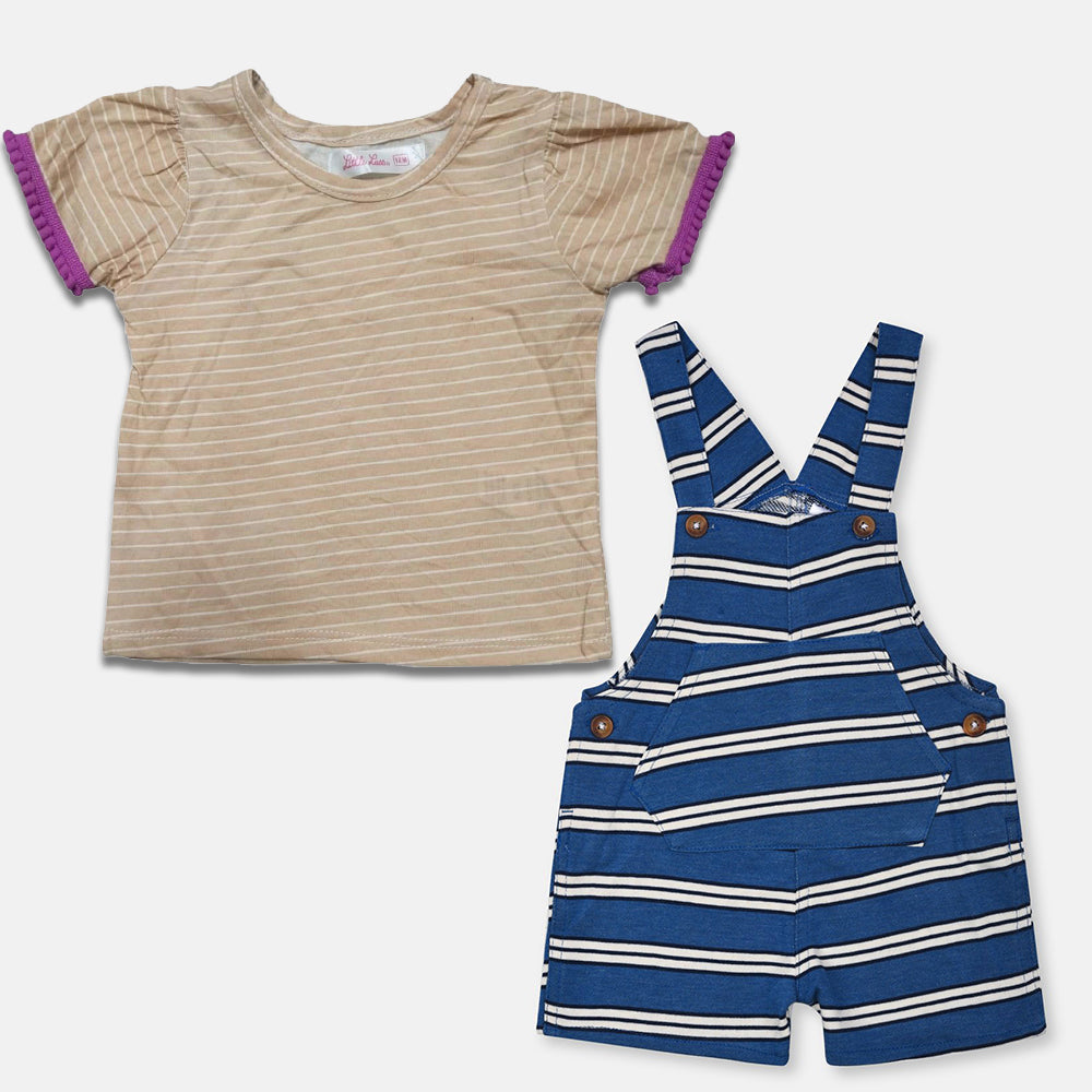 LL Biscuit Brown Top With Cadet Blue Dungaree 2 Piece Set 12878