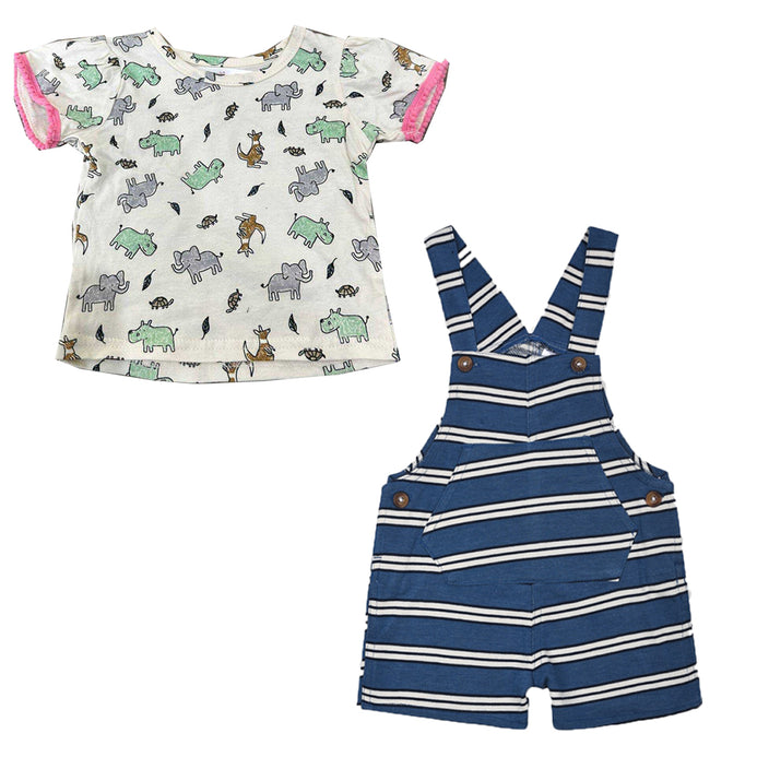 LL Jungle Animal Print Top with Striped Cadet Blue Dungaree 2 Piece Set 12871