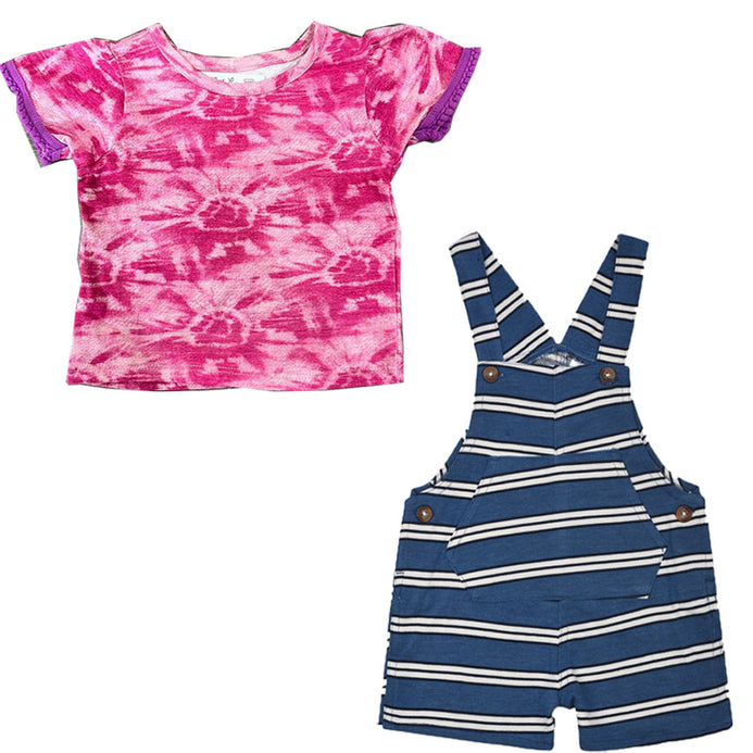 LL Retro Dark Pink Top with Striped Cadet Blue Dungree 2 Piece Set 12874