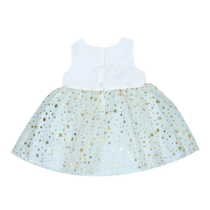 MM Foil Stars Bottom With Sherpa Sharug White Frock 13330