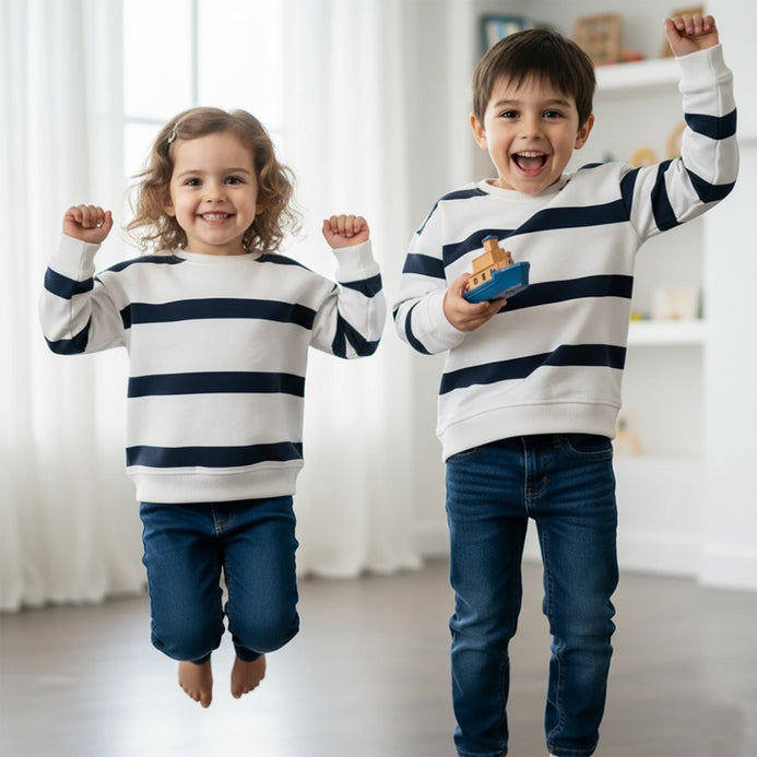 MNG Navy Blue & White Stripes Terry Sweatshirt 14330
