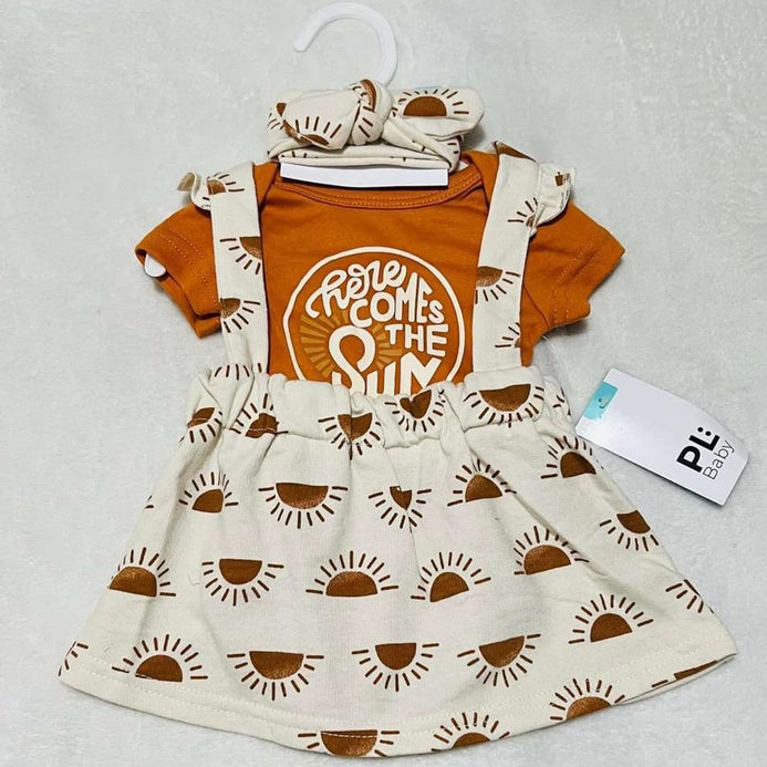 PL Sunshine Cream White Dungaree with Rust Body Suit & Head Band 3 Piece Set 13117