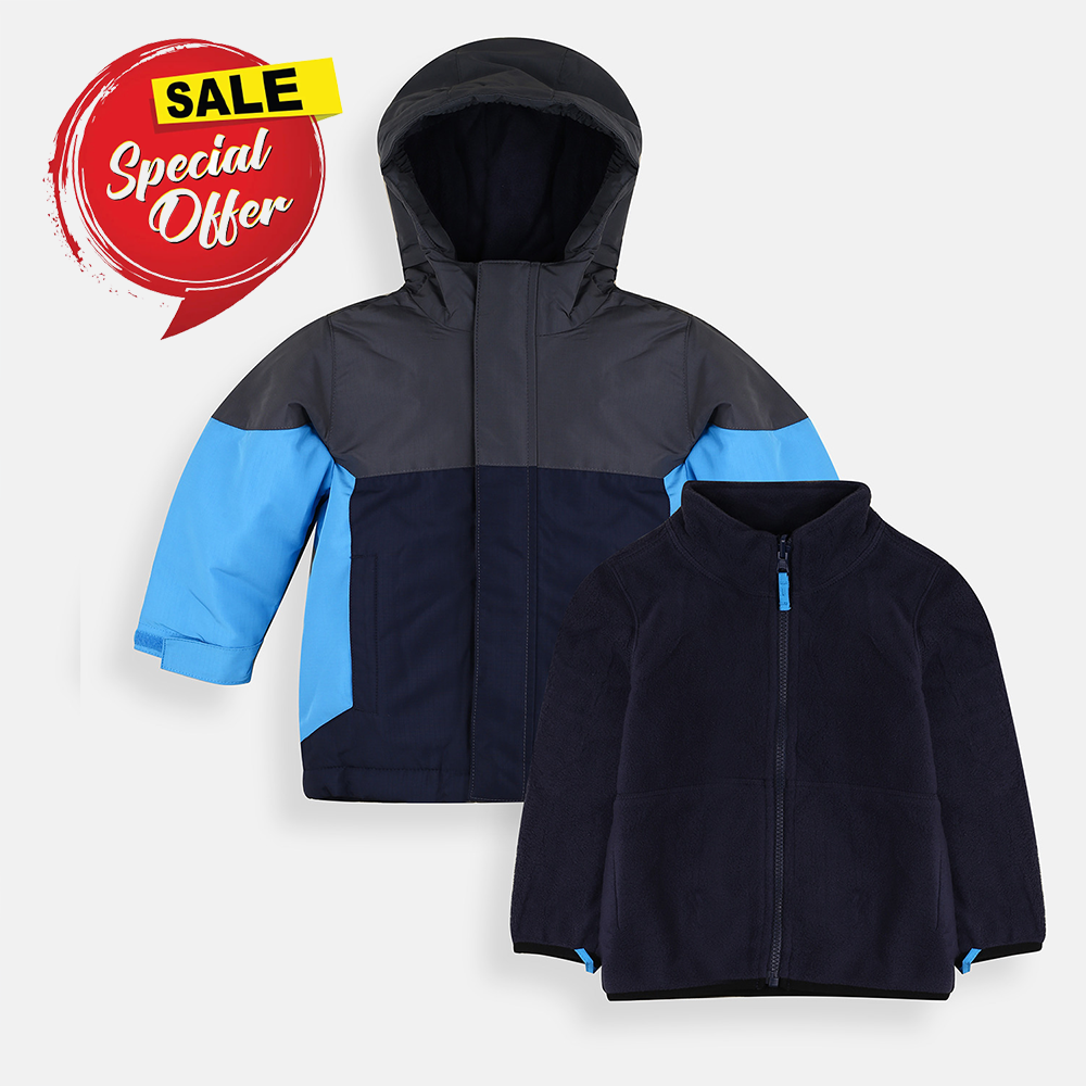 PLC Color Black Light Blue With Grey Puffer Jacket With Inner Fleece 7958