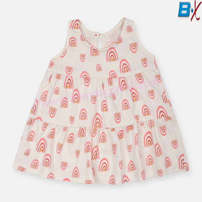 PMK Pink Rainbow Sleeveless White Frock 11724