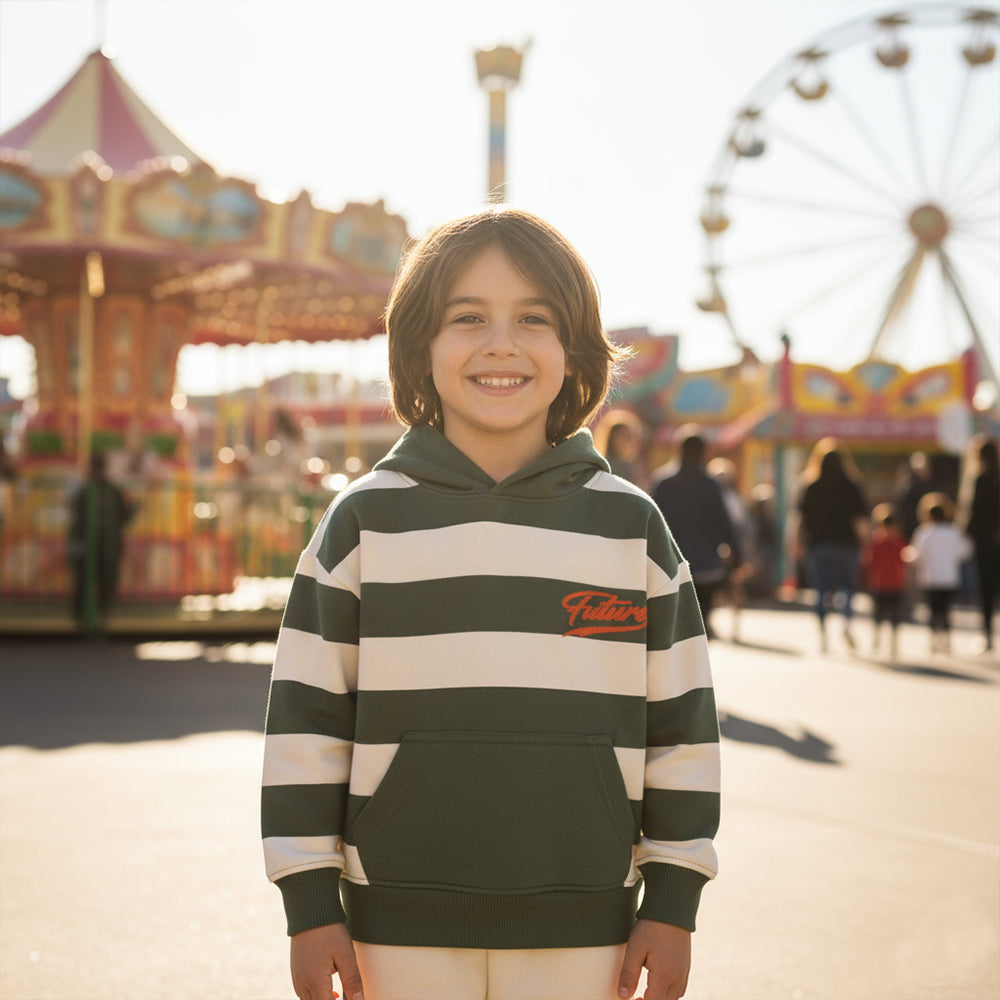 PRMK Future Embroided Green & Cream Stripes Fleece Hoodie & Trouser 2 Piece Set 13413