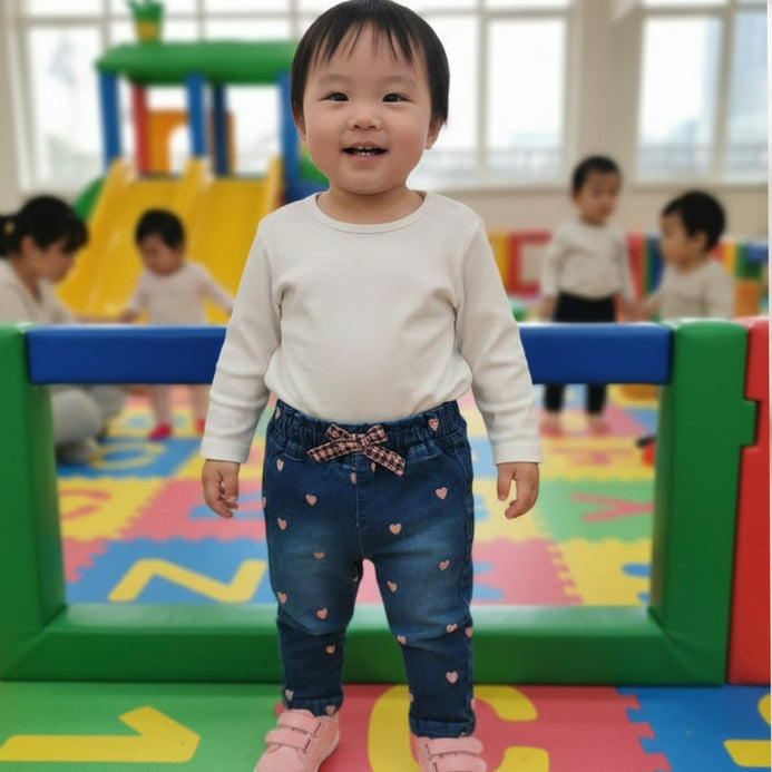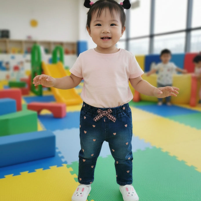 PRNT Small Heart Embroided Blue Denim Pant 14982