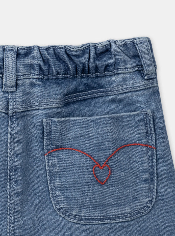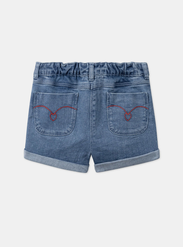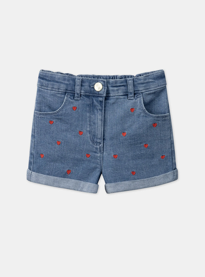 SM All Over Embroided Red Heart Blue Denim Shorts 13309