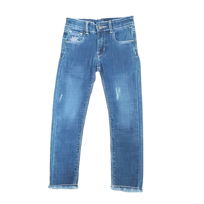 SP Mid Blue Front Flower Embroided Pocket Denim 7068