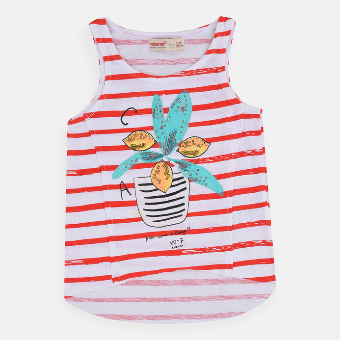 SS Sequence Lemon Jar Red Stripe Rough Bottom Sleeveless Top 4055