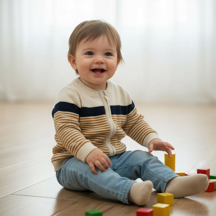 TAO Mustard And Off White Stripes Zip Style Sweater 14393