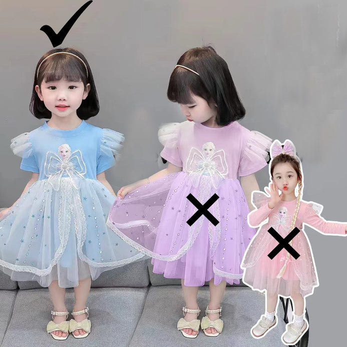 YJTX Big Elsa Print Bow & Lace Style Blue Frock 13098