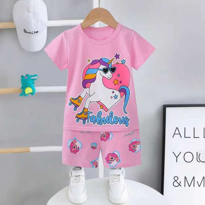 YKX Unicorn Fabulous Print Pink 2 Piece Shorts Set 10763