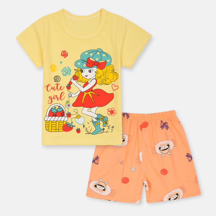 YKXT Cute Girls & Strawberry Yellow Shorts 2 Piece Set 11599