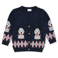 ZR British Texture Puppy Design Navy Blue Cardigan 11934