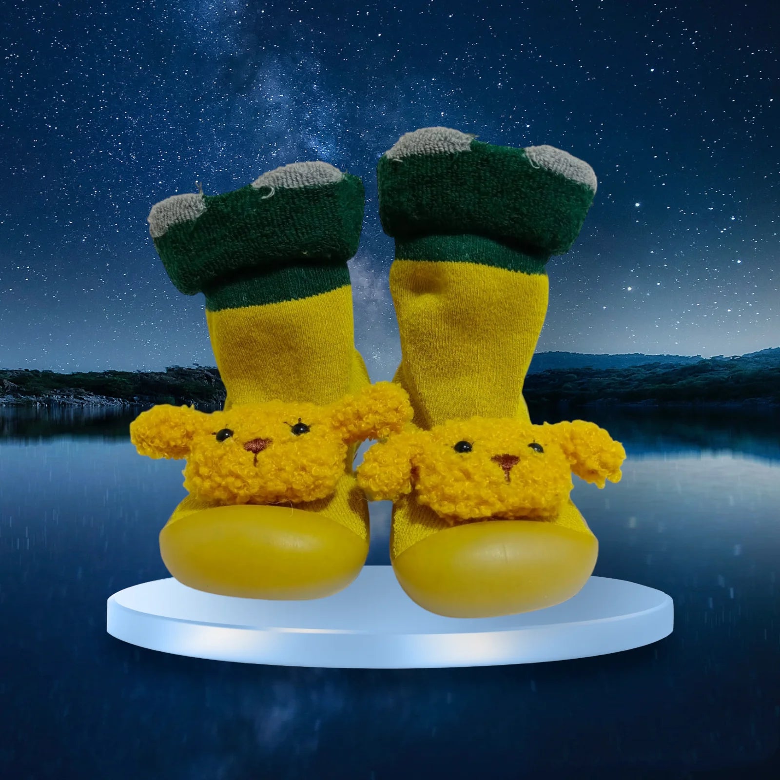 CN Fluffy Puppy Aplic Mustard Silicon Bottom Socks Shoes 12584