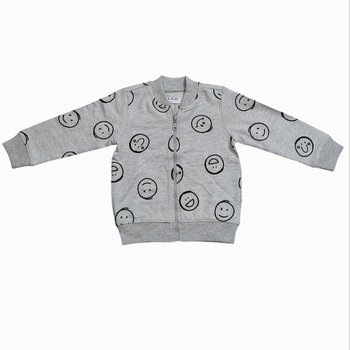 5.10.15 All Over Smiles Print Mock Neck Grey Zipper 13484
