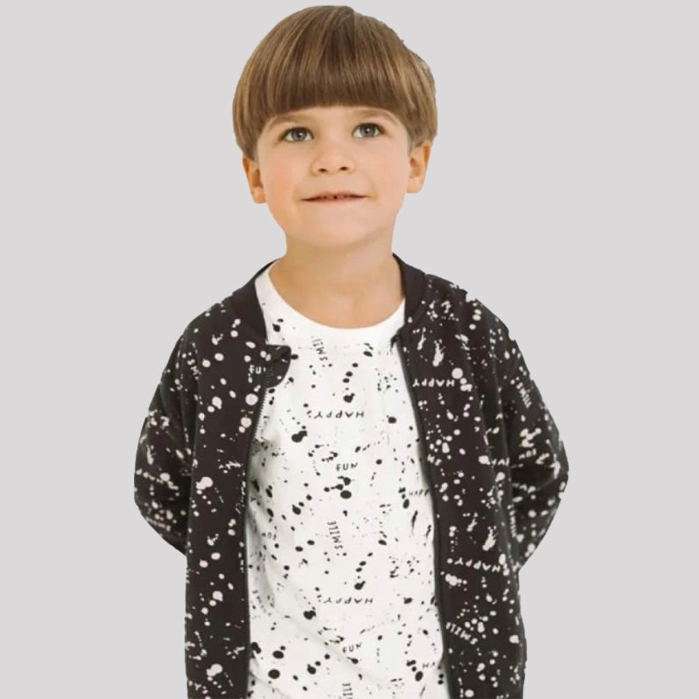 5.10.15 Happy Smile Fun Mock Neck Black Terry Zipper 14801