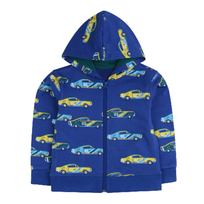 B.X All Over Car Print Blizzard Blue Zipper Hoodie 7969