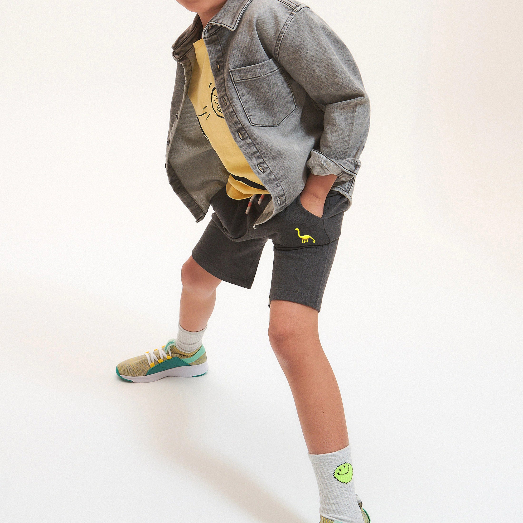 B&Y Dino Embroidered Light Cord Dark Grey Cotton Shorts 10757