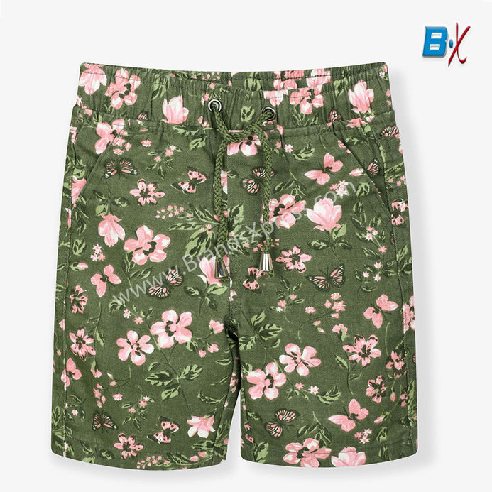 CRT Floral Print Green Cotton Shorts 9136