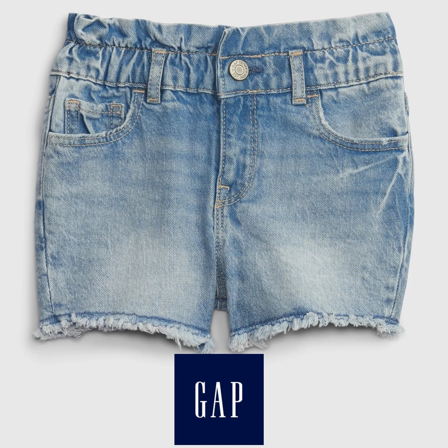 GP K Elastic Waist Silver Button Light Rough Denim Shorts 13993