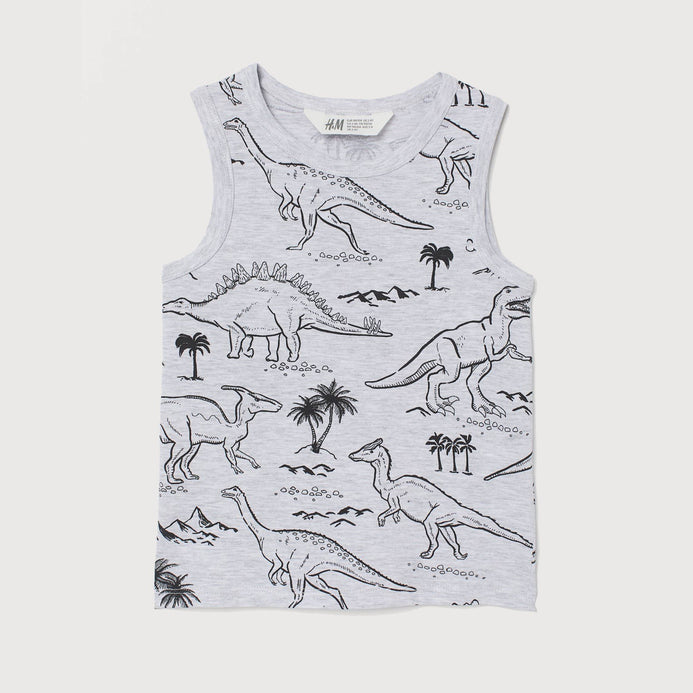 HM Dino Printed Light Texture Grey Tank Top 4785