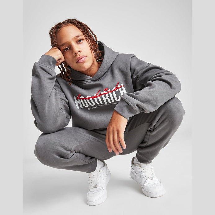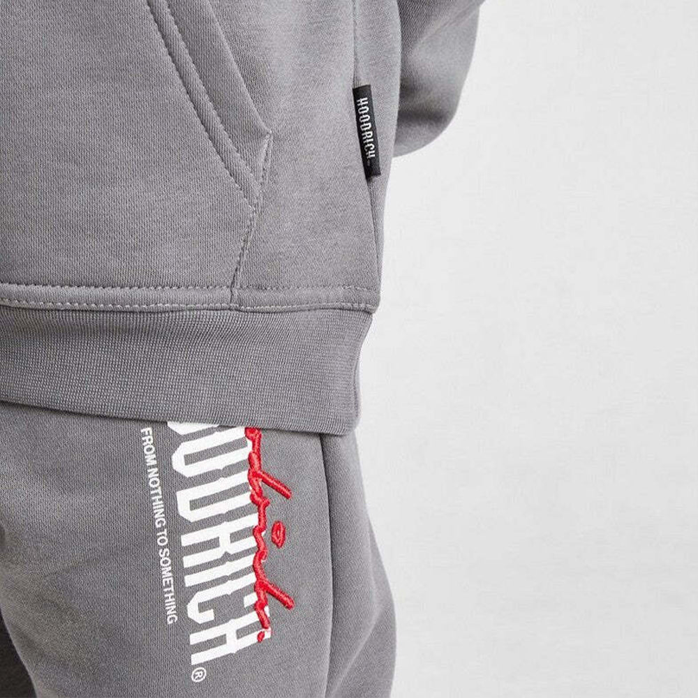HR Embroided To Something with Kangroo Pocket Style Dark Grey Hoodie TrackSuit 14264