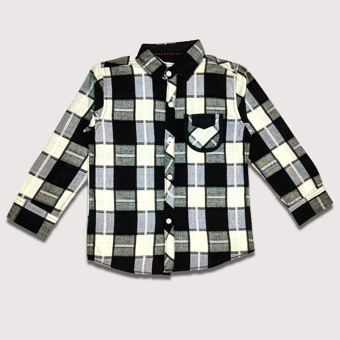 HT Black & Grey Check Box Front Pocket Full Sleeves Shirt 14091