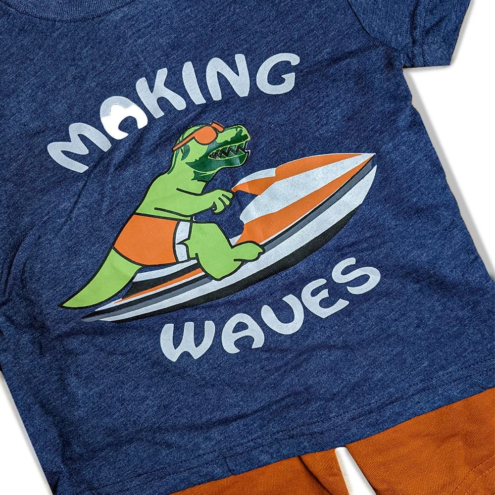 JC Making Waves Print Blue T-Shirt with Orange Shorts 2 Piece Set 14088