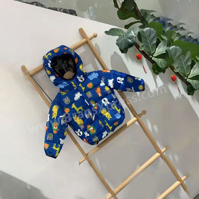 JPS Animal Print Blue Hoodie Puffer Jacket 9804