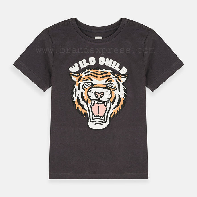 Kids Wild Child Tiger Face Dark Grey Tshirt 7248