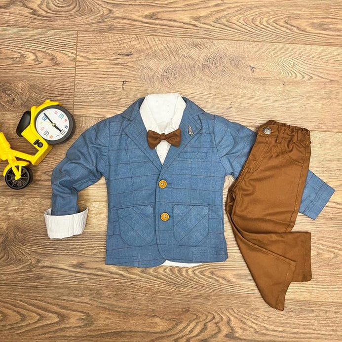 KK Box Check Dull Blue With Brown 4 Pieces Suiting Set 12591