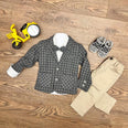 KK Grey With Beige Check 4 Pieces Suiting Set 12588