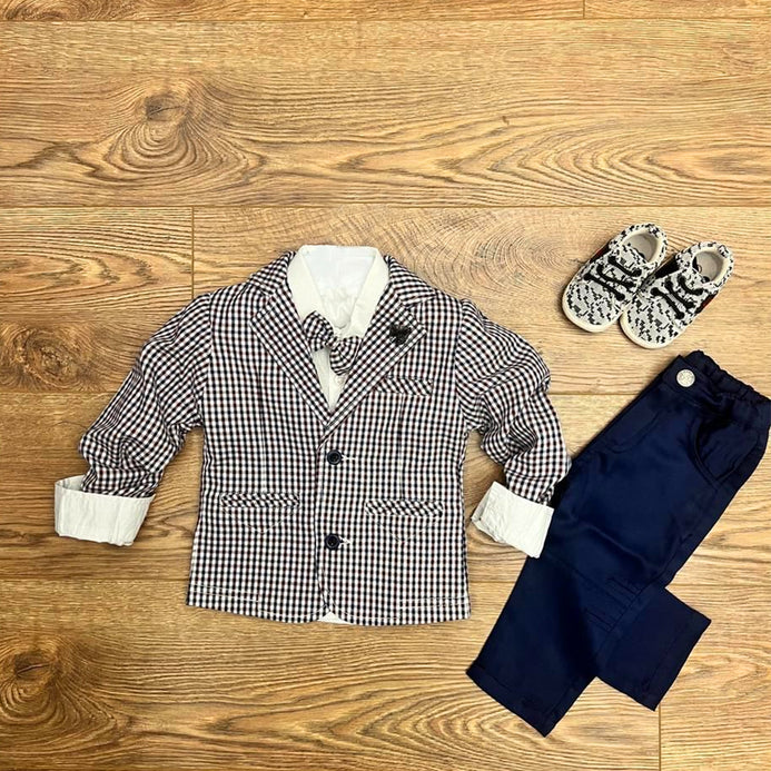 KK Red & Blue Flannel Check 4 Pieces Suiting Set 12589