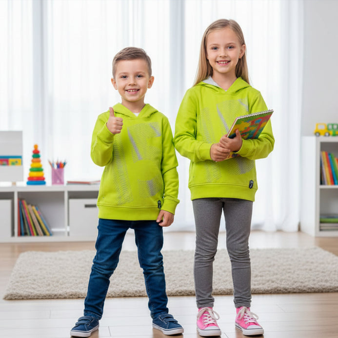 L&S 15 Print Sided Pocket Neon Green Fleece Hoodie 14375