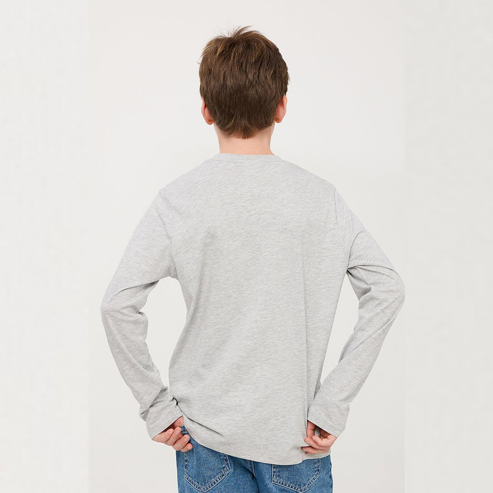 L&S Hope Applic Textured Grey Terry Full Sleeves T-Shirt 14054