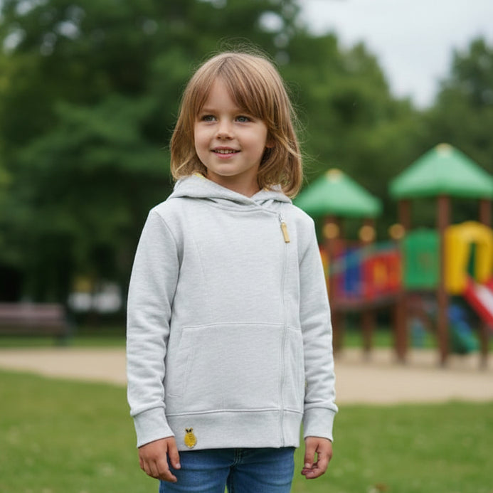 L&S Lemon Embroided Open Style Zip With Grey Pocket Light Grey Terry Zipper Hoodie 14376